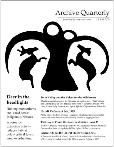 Honouring the indomitable spirit of Indigenous Peoples west of the Rocky Mountains. This journal offers a curated collection of rare archival material in every issue: maps, timelines, new interviews, key excerpts from rare original docs, and more.