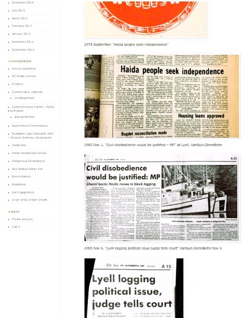 Memos, pictures, news clippings and more are categorized under Title, Lands, Children, Lawfare, Non-Status Era, and Roadblocks.